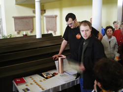 Zum feierlichen Knopffest in der Pfarrkirche wurden die Dokumente ausgestellt, die für die Hülse des Knopfes ausgewählt wurden und für die Nachwelt im Turmknopf verwahrt werden.