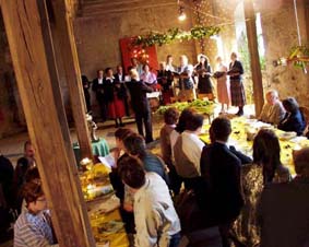 Abendliches Kräutermenü mit festlich geschmückten Renaissancesaal
