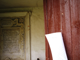 Im Inneren befindet sich eine Gedenktafel mit Inschriften für Anna geb. Kihn, die Frau des Ver-walters Conrad Müller und ihren Sohn. Er stand im Dienst des hochgräflichen Albrecht von Ronow - u. Bieberstein.